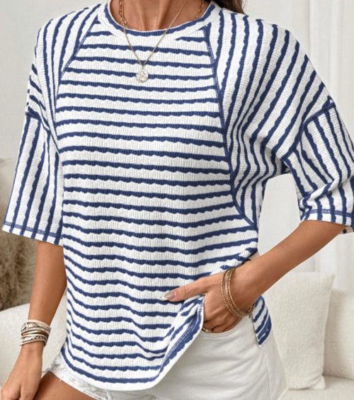 Blue & White Knit Top